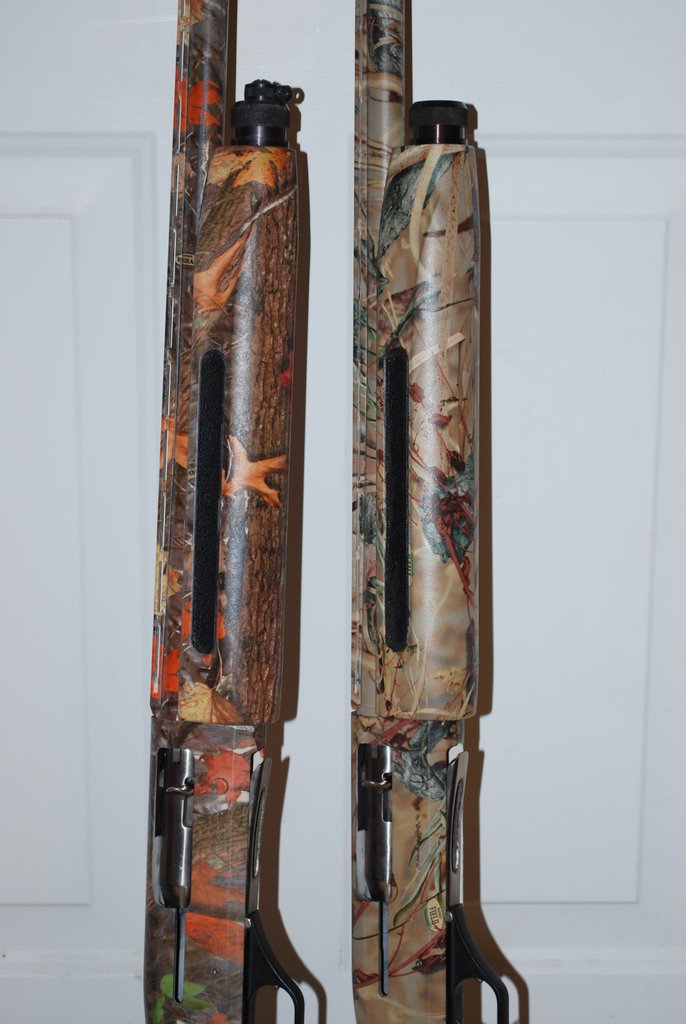 New or used, synthetic or wood, we can give any gun a new look and feel. - Below is a Remington SP453 in King's Shadow Field Pattern for comparison - including the receiver prior to customizing.